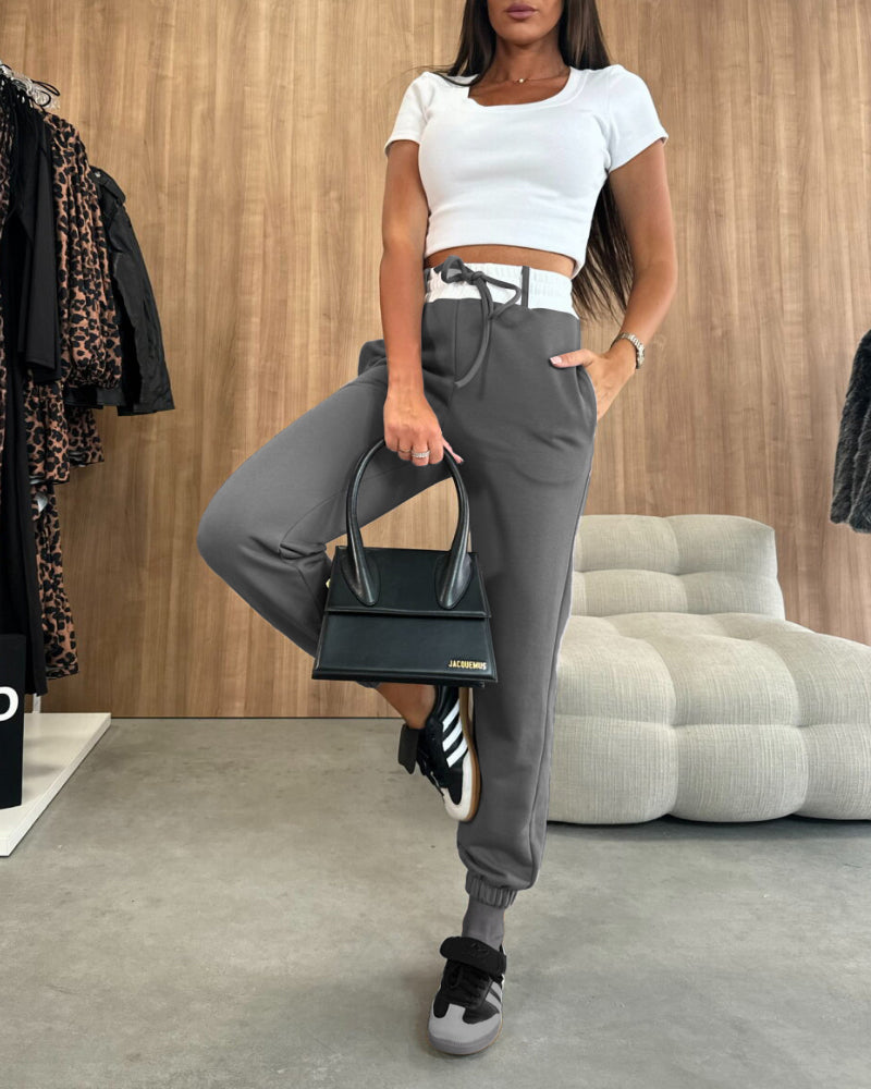 Stretchy Waist Pocket Design Cuffed Sweatpants