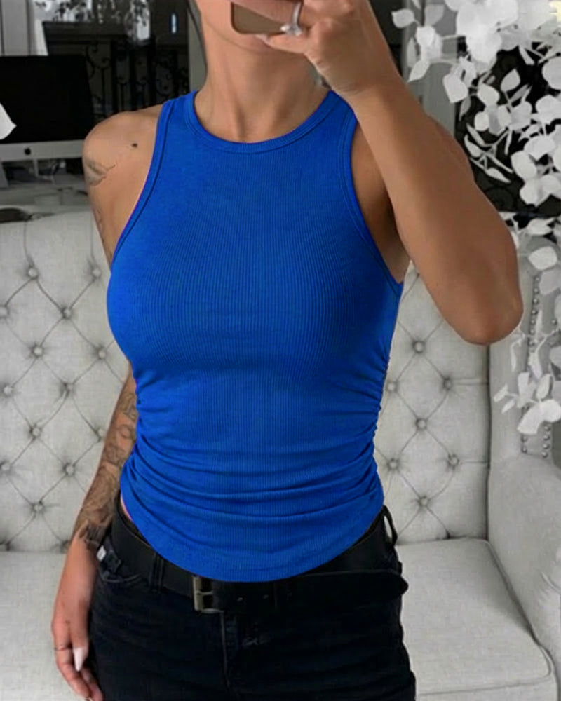 Round Neck Sleeveless Side Ruched Tank Slim Fit Ribbed Racerback Tank Top