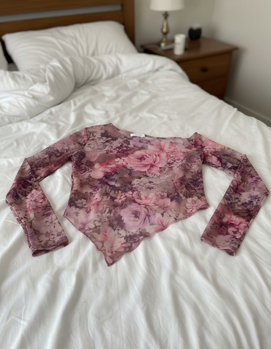 Design Details: One-shoulder exposure and side ruching create a sweet-yet-sultry vibe. Thumb-hole cuffs and sheer mesh overlay add functionality and dimension, while the floral print lends soft visual interest.