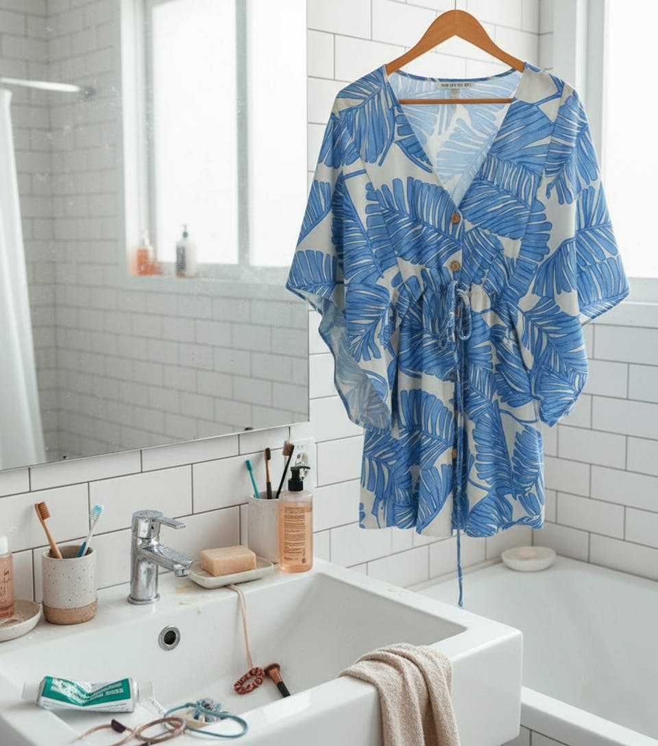 Silhouette & Fit: Loose A-line silhouette with a drawstring waist allows adjustable fit, flattering the waist while maintaining a relaxed, comfortable shape. Batwing sleeves enhance mobility and provide a forgiving fit for various body types.