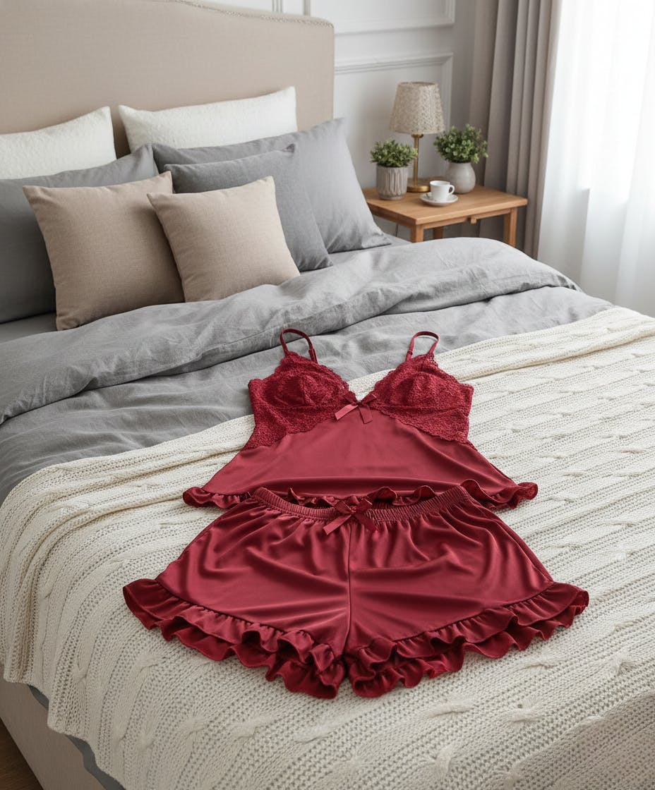 Occasion & Use: Ideal for home and loungewear settings, this pajama set combines lace details with a relaxed structure. Suitable for everyday lounging, warm evenings, or casual at-home moments during spring and summer.