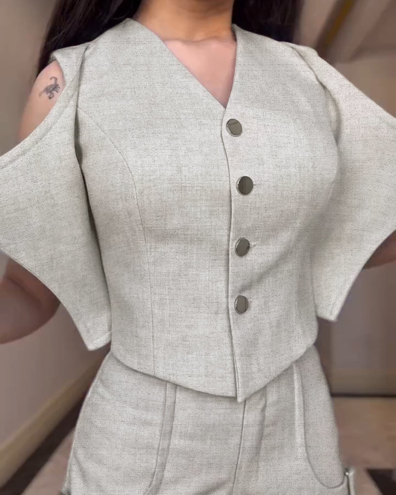 2 Pieces Outfit Sleeveless Button Front Buckle Design Vest and Casual High Waist Slim Fit Pants Set