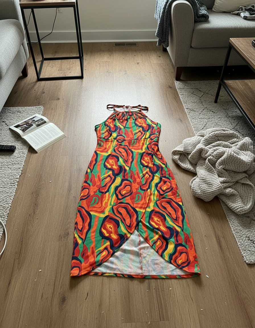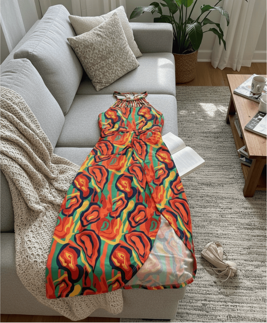 Styling & Pairing: Pair with flat sandals for beach vacations or style with strappy heels for casual outings. Minimal accessories allow the abstract print and halter design to stand out, making the dress easy to style for day-to-night transitions.