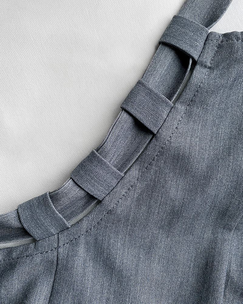 - Tied back detail – Self-tie back allows a customized fit, adding structure and a touch of femininity to the minimalist cut.
