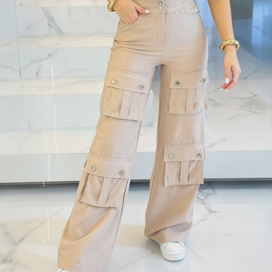 Styling & Pairing: Easy to style with fitted tanks, cropped tops, or lightweight knits. The wide leg cut pairs well with sneakers for casual looks or sandals and boots for a more polished utility-chic outfit.