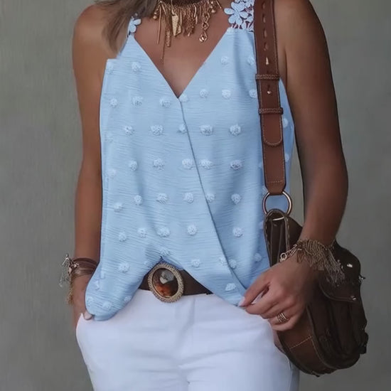 3D Decor Overlap V Neck Lace Crochet Thick Strap Tank Top