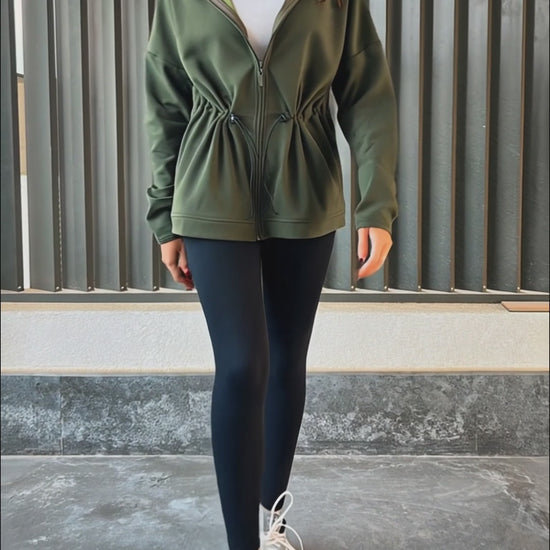 Design Details: Adjustable waist drawstring allows personalized shaping from relaxed to cinched; full front zipper closure ensures easy on and off; practical side pockets and hood enhance both utility and casual style.