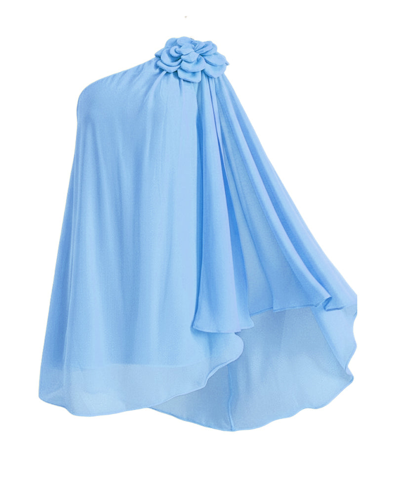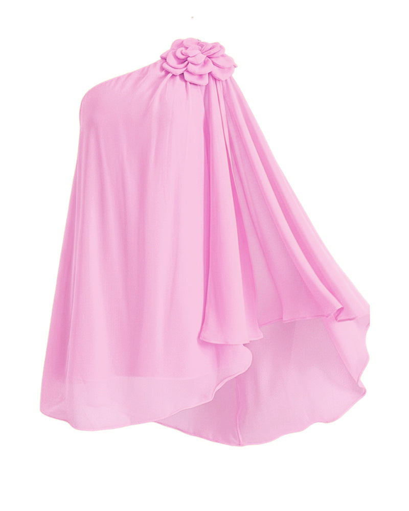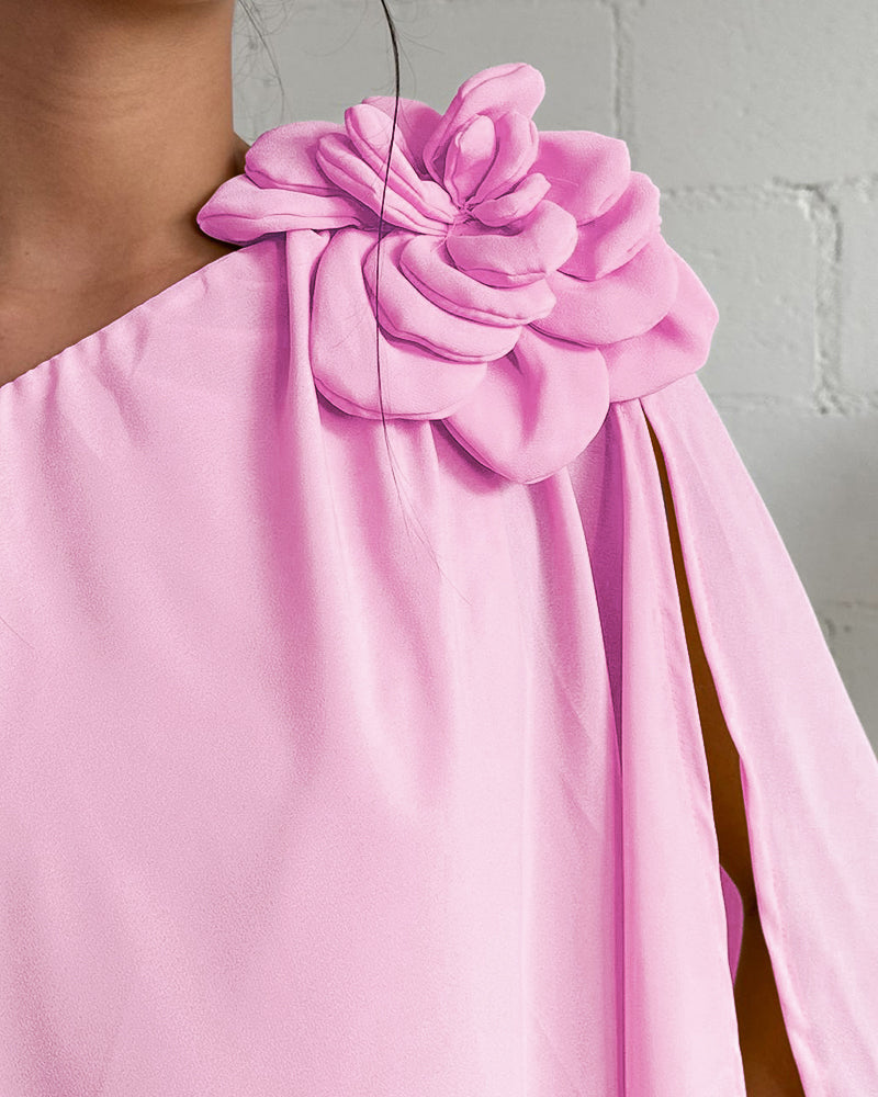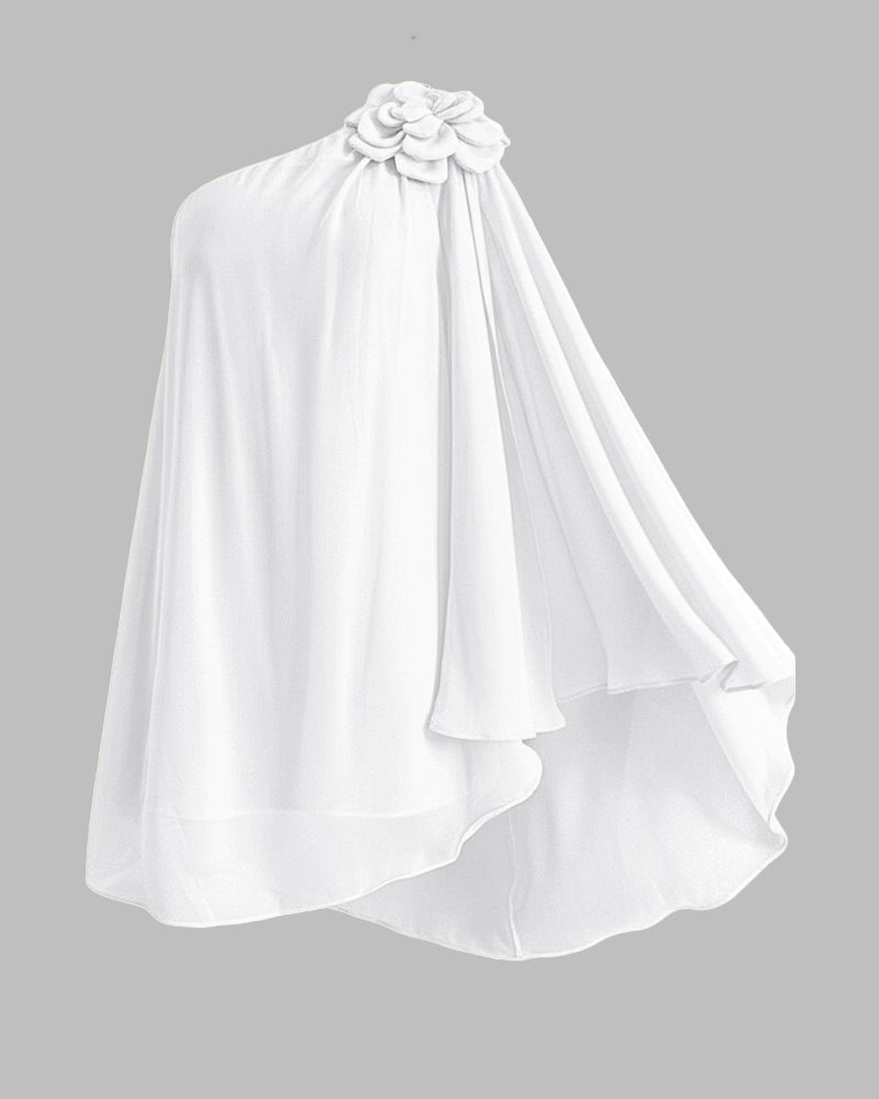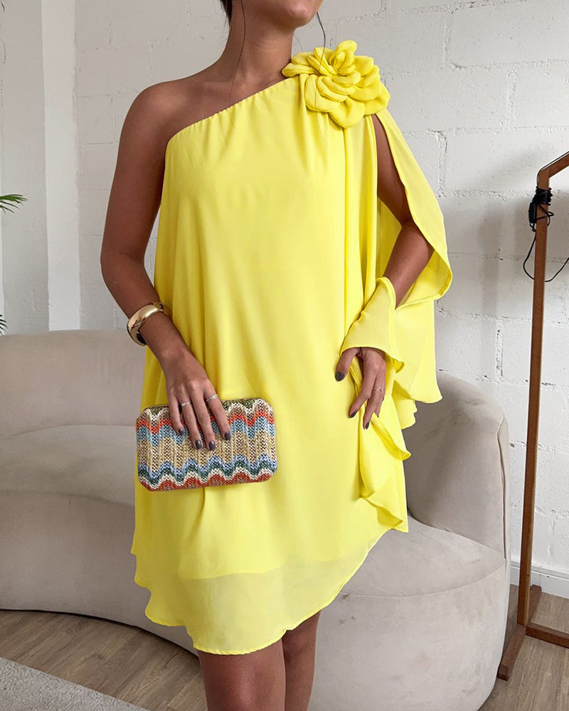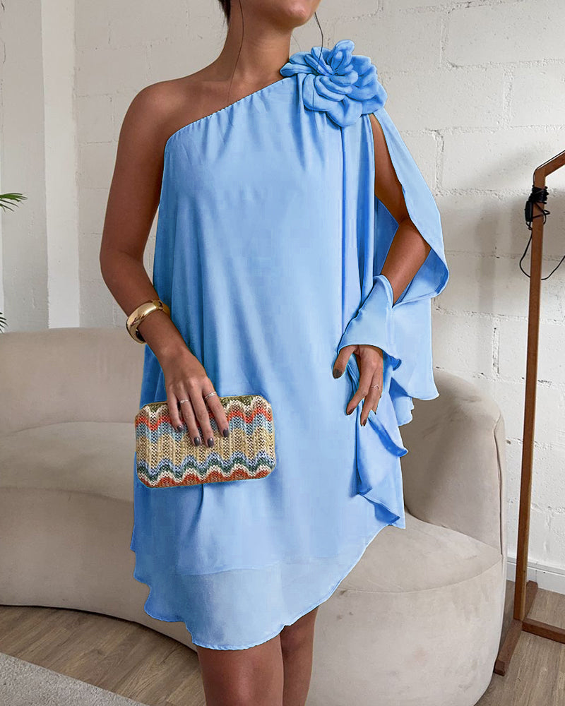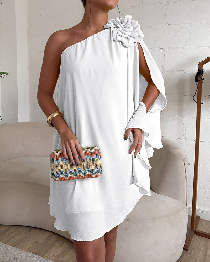 One Shoulder Sleeveless 3D Flower Decor Mini Dress Casual A Line Vacation Dress