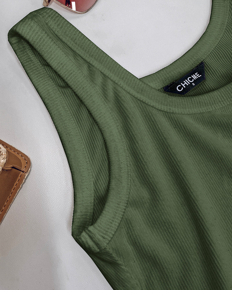 Scoop Neck Sleeveless Ribbed Tank Top Cami Tee Shirts