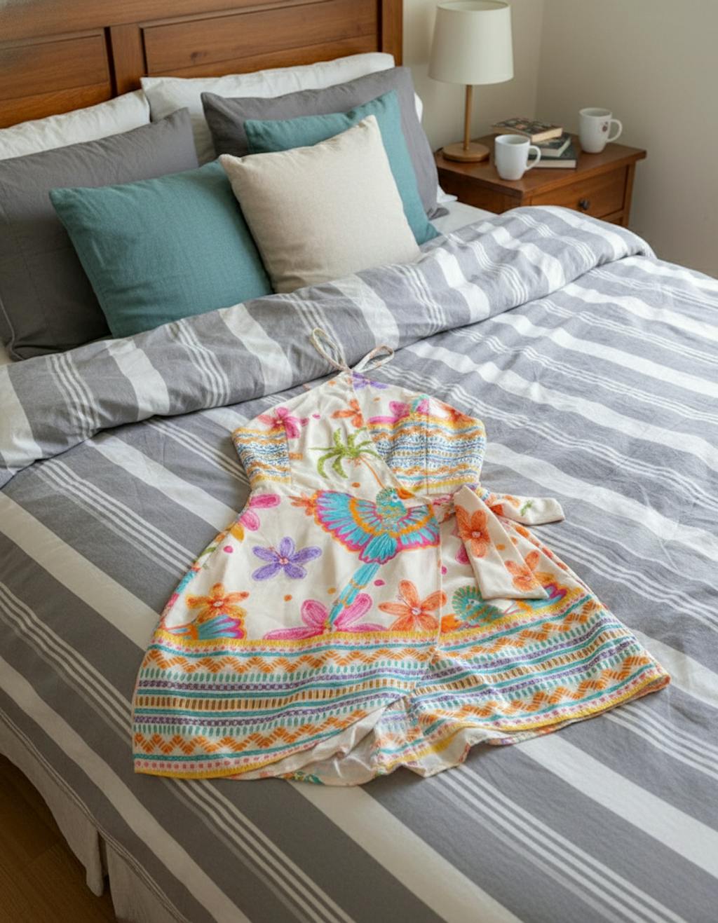 Styling & Pairing: Style with platform sandals or flat slides for beach looks, or pair with statement earrings and a straw bag for dates and vacation strolls. Minimal layers keep the tropical print as the focal point.