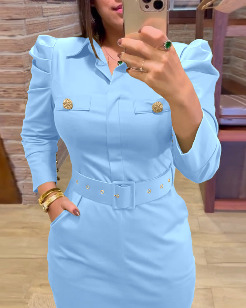 Elegant & Professional Design: This bodycon dress features a classic turn-down collar, long sleeves, and button decor, making it a sophisticated choice for the office or professional settings.