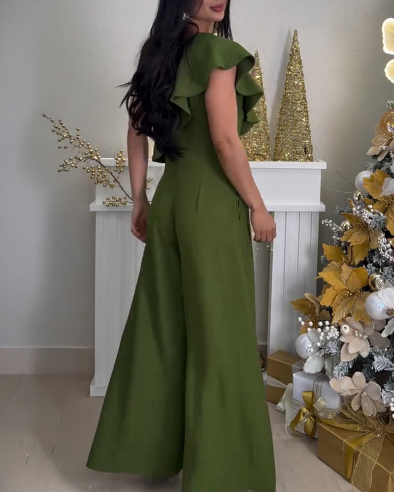 The ruffles are so fun and flirty. This isn't your average jumpsuit; it鈥檚 a statement piece!