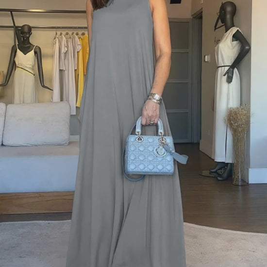 V-Neck Sleeveless A Line Casual Dress Casual Two-Way Wear Loose Fit Maxi Dress