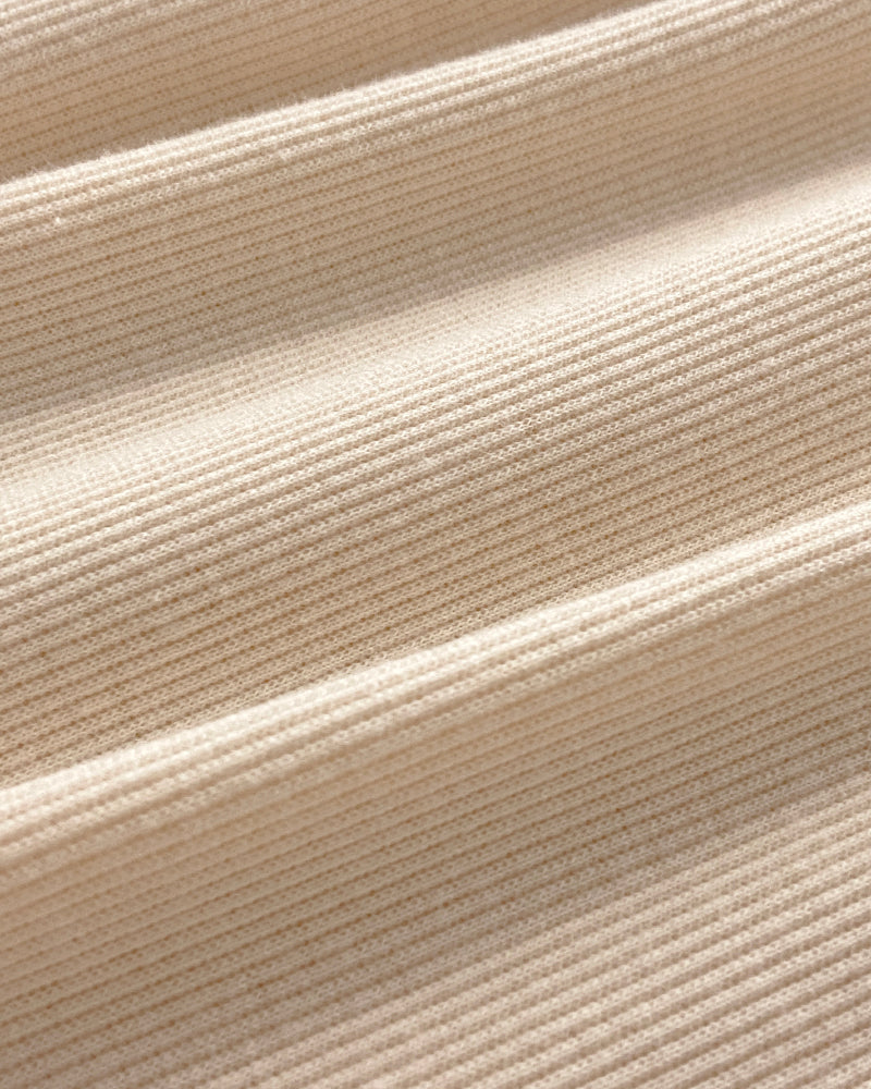 Made from ribbed fabric, the pants set offers a comfortable and flexible fit, ensuring ease of movement while maintaining its shape.