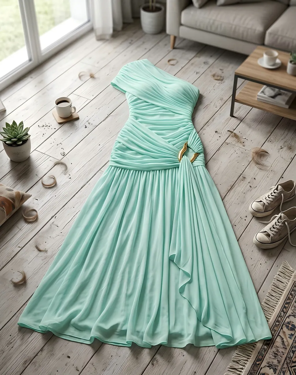 SILHOUETTE - Sculpted Asymmetrical Glamour: Features a sophisticated one-shoulder neckline and precision-engineered all-over ruching that contours the waist and hips. The dramatic high-slit hemline elongates the legs, creating a statuesque, high-fashion profile that celebrates your natural curves.