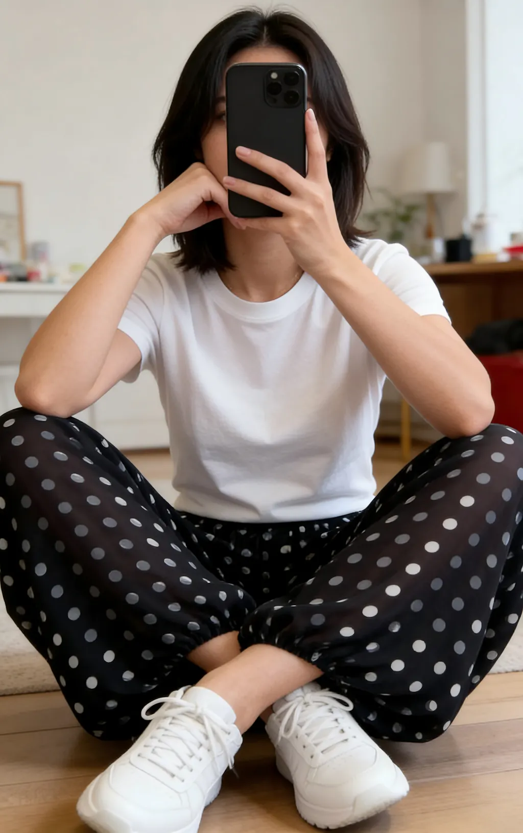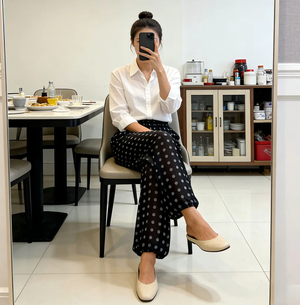 DESIGN - Vintage Polka Dot & Sheer Aesthetic: Features a classic polka dot print that evokes a timeless retro-chic vibe. The sheer, semi-transparent fabric adds a layer of sophisticated mystery and a dreamy, hazy allure, making these pants a standout piece for fashion-forward wardrobes.
