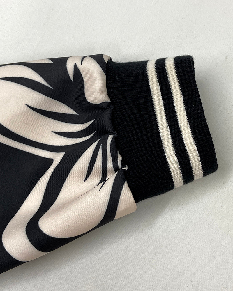 Floral Print Baseball Collar Long Sleeve Casual Jacket