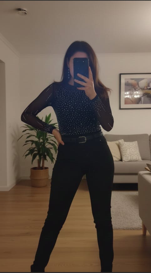 Occasion & Use: Ideal for night-out settings, parties, and stylish daily outfits. The all-mesh texture, rhinestone shine, and fitted silhouette deliver a confident, fashion-forward statement suited for bold fashion styling across multiple scenes.