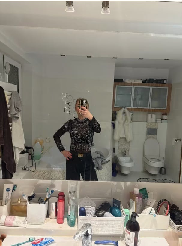 Styling & Pairing: Wear under a blazer, leather jacket, or high-waist bottoms to highlight the rhinestones through the mesh. Pair with denim or faux leather for night-out looks, or layer creatively to adjust coverage while keeping the mesh effect visible.