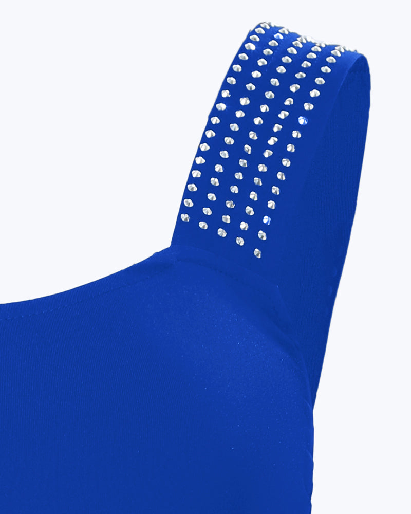 Design Details: Designed with a square neckline and thick straps, the top creates a structured, flattering silhouette while providing stable coverage. Sparkling rhinestone embellishments add a touch of glam to its minimalist design, catching the light with every move.
