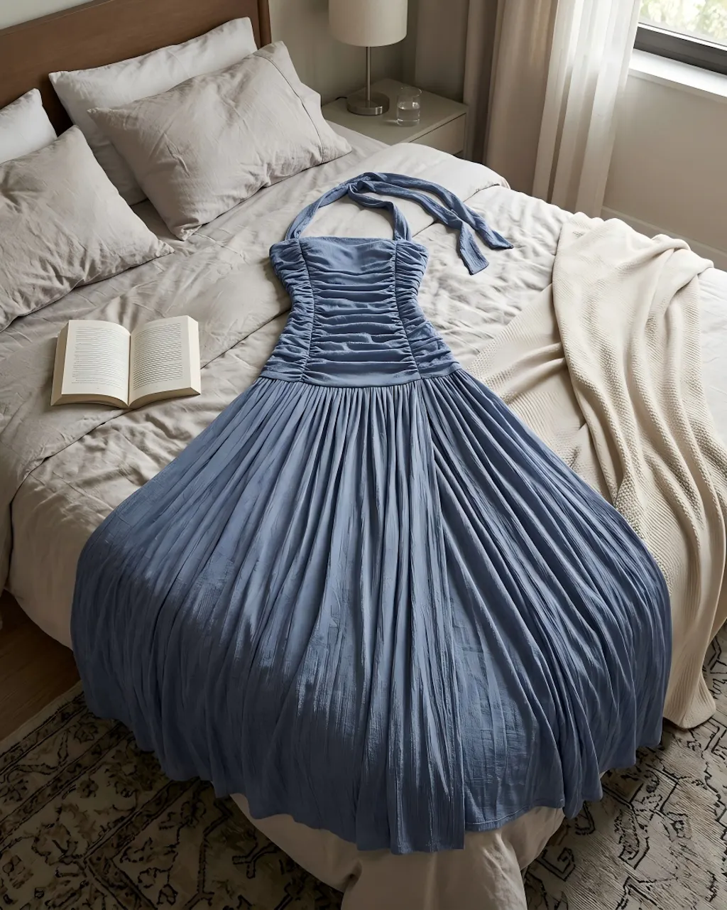 Comfy all night! Soft material, no tightness, flattering halter tie dress.