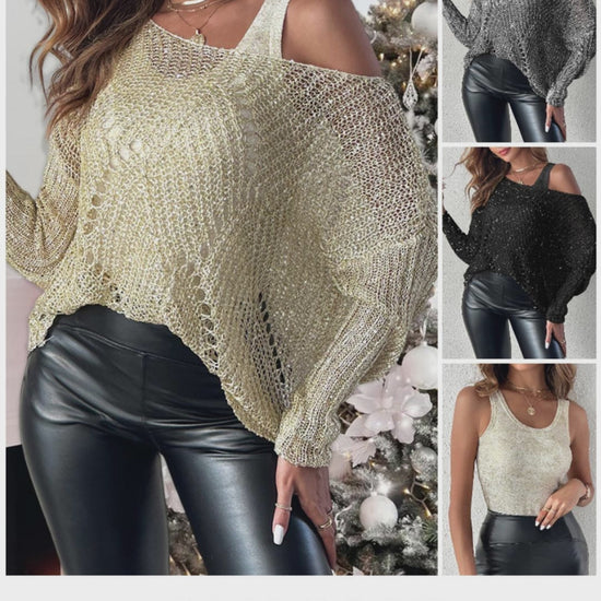 Material & Comfort: Made from 100% polyester with shimmering lurex threads, this two-piece set features a soft yet structured crochet texture. The inner tank provides breathable coverage, while the outer hollow-knit pullover adds a lightweight, airy feel perfect for warm weather or resort wear.