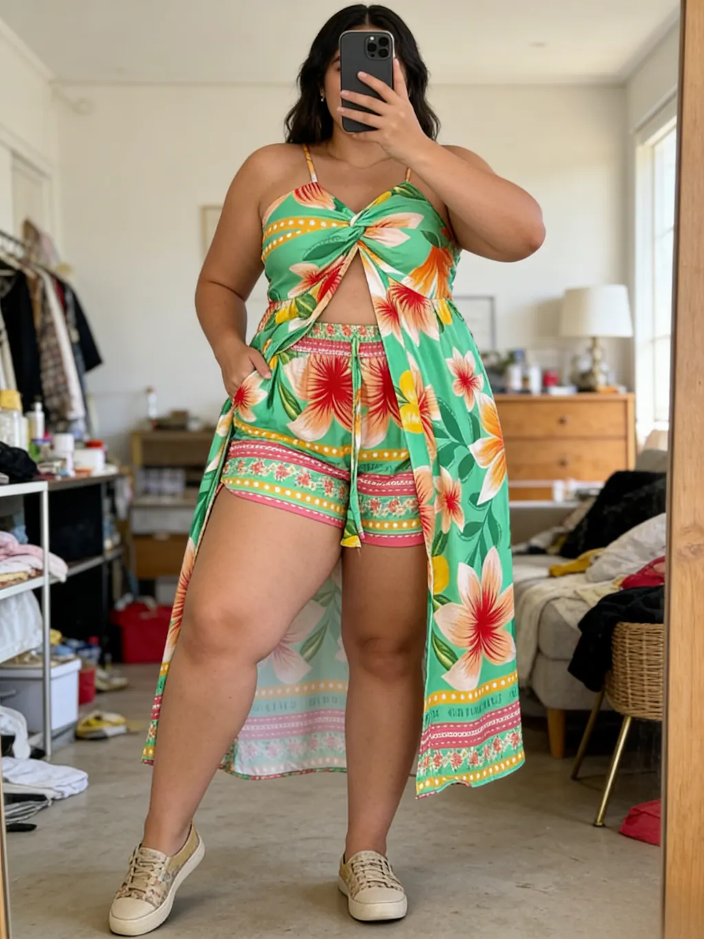 Styling & Pairing: Wear together for a bold vacation look, or style the cami with skirts and the shorts with simple tanks. Pair with sandals, wedges, and straw bags for summer-ready outfits.