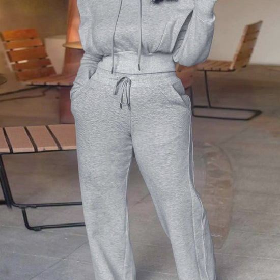 Silhouette & Fit: The cropped hoodie and wide-leg sweatpants create a relaxed, flattering silhouette, ideal for casual, everyday wear.