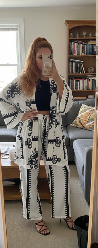 Finally a set that fits my style! The baroque pattern is elegant and the wide-leg cut is very flattering.