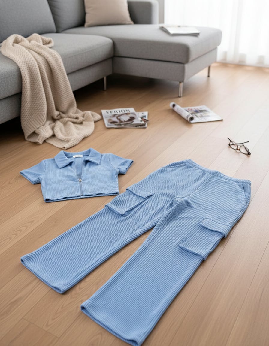 Styling & Pairing: This ribbed two-piece set pairs effortlessly with sneakers or sandals, creating a casual-chic look for daily errands, cafe visits, or friends’ meetups, emphasizing contemporary street style.