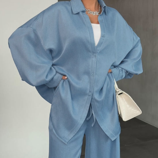 Design Details: The top is designed with a classic turn-down collar, button-front closure, and curved hem for a clean layered look. Pants feature an elastic waist with drawstring adjustment and functional pockets for everyday practicality.