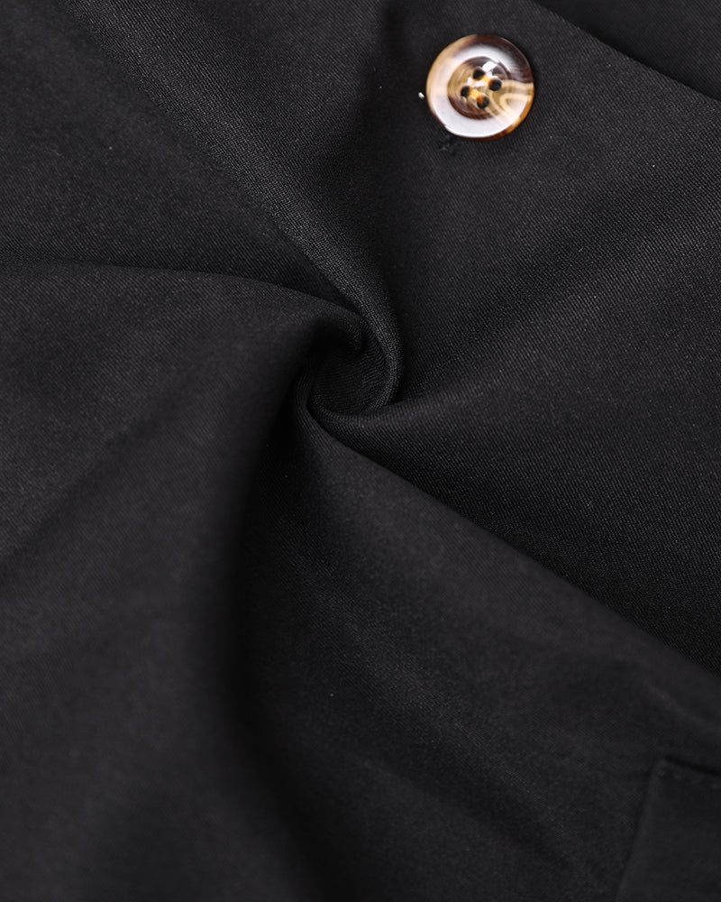 Design Details: The vest is designed with a V-neck and button-front closure for a tailored look. Shorts feature a zipper fly, practical pockets, and a contrast elastic back waistband that adds visual interest and flexibility.