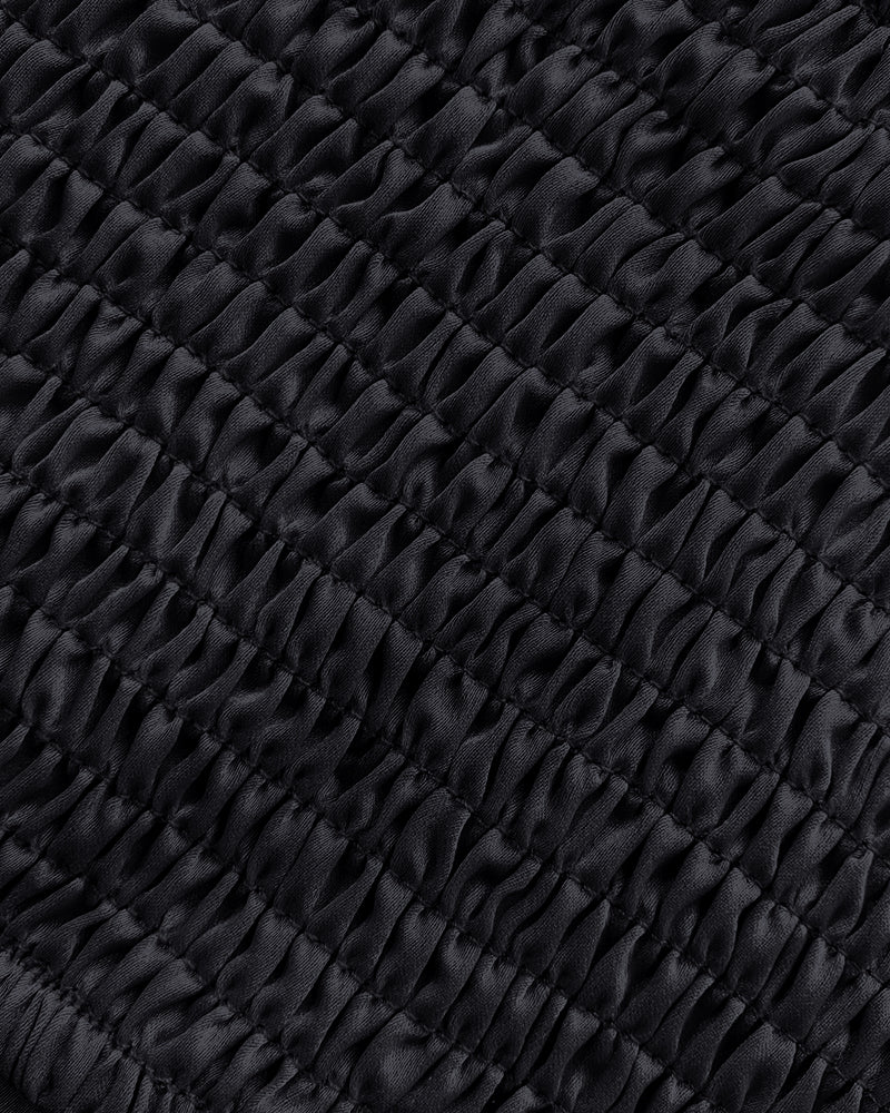 - Elastic shirred back Stretchy back panel offers a comfortable, flexible fit that adapts to different body shapes with ease.