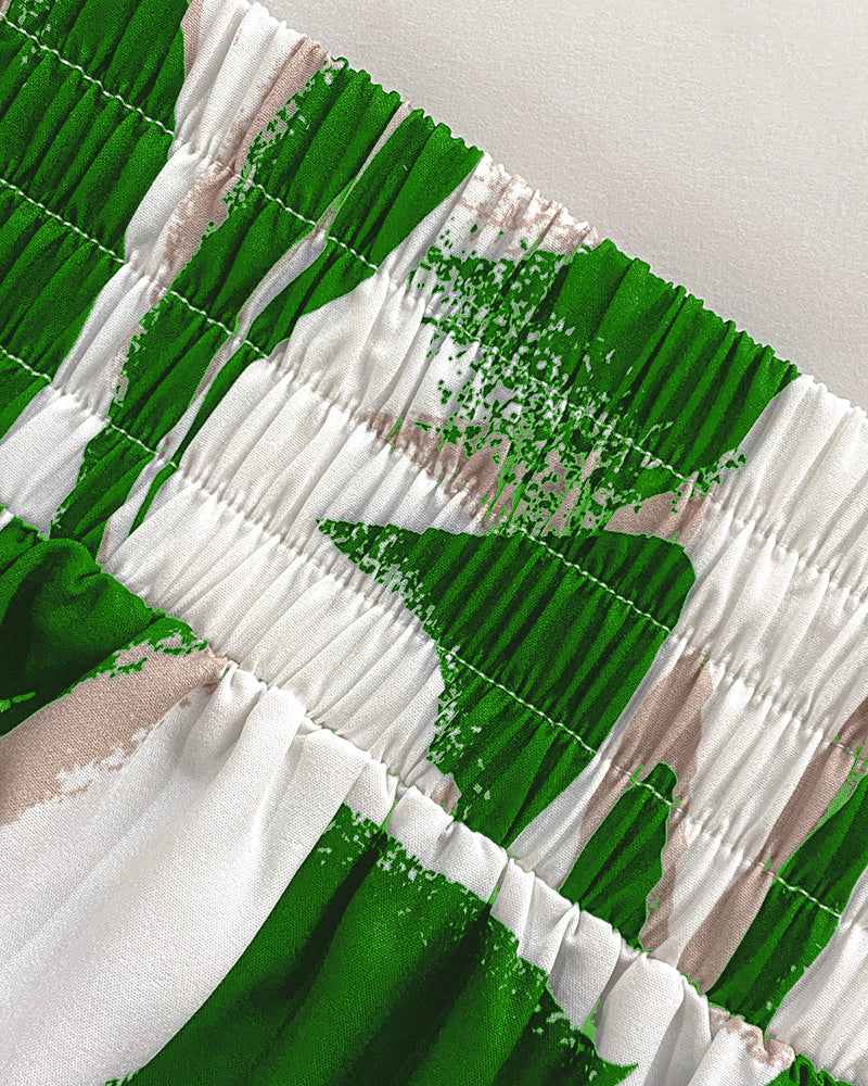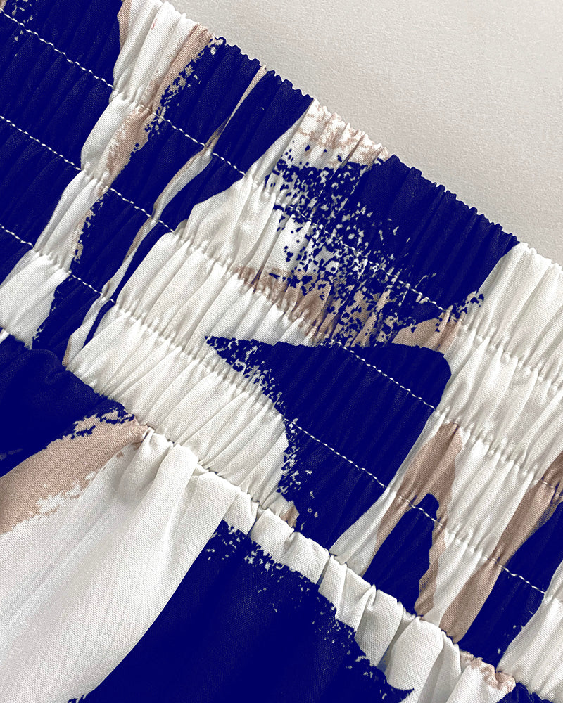 2 Pieces Outfit Wrap Plunge V Neck Crop Blouse and Casual Floral Print Wide Leg Pants Set