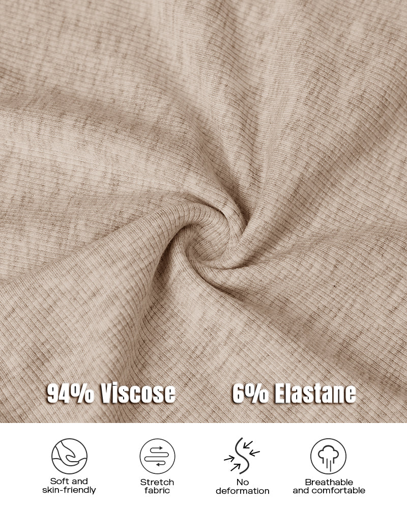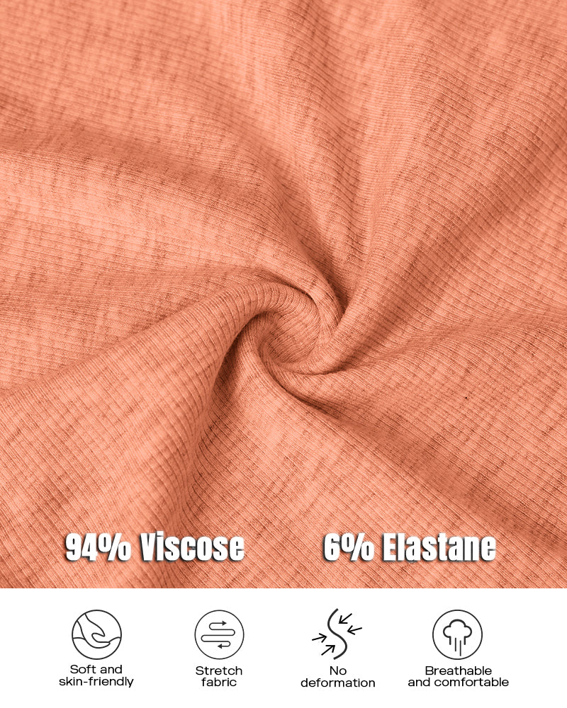 Material & Comfort Made from 94% Viscose and 6% Elastane, the ribbed knit fabric is soft, breathable, and stretchy, providing comfort and shape retention for daily wear.