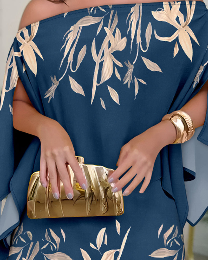 3 Pieces Outfit Off Shoulder Split Sleeve Convertible Shoulder Top and Elastic Back Waist Skorts Set Casual Plants Print Vacation Set with Bandeau