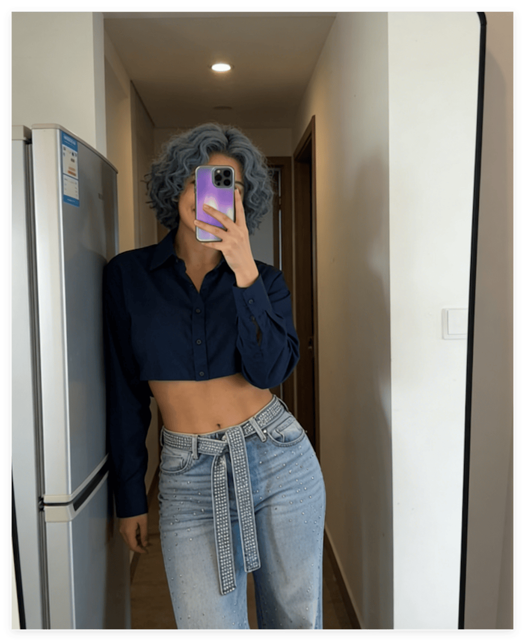 Silhouette & Fit: Featuring a high waist and flared cut, these jeans create an elongated, relaxed silhouette. The roomy leg design ensures comfort without sacrificing style, making them versatile for casual and chic everyday wear.