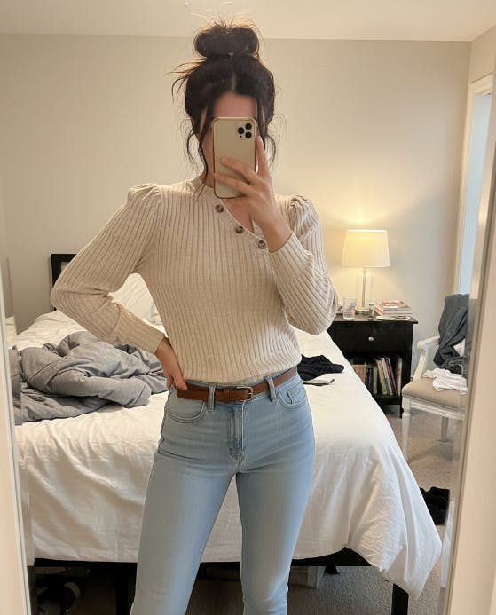 ¡Me encanta la textura acanalada! Tiene una elasticidad increíble y se adapta a mi figura sin apretarme demasiado. El escote en V tiene la profundidad perfecta.