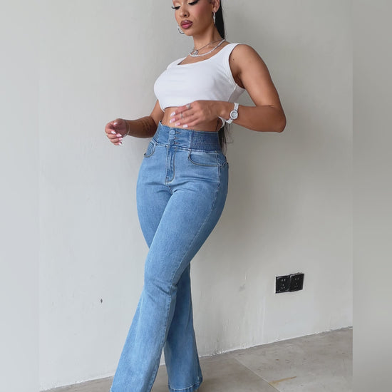 ChicMe CurveEase Back Shirred Button Front High Waist Jeans Skinny Flared Denim Jeggings