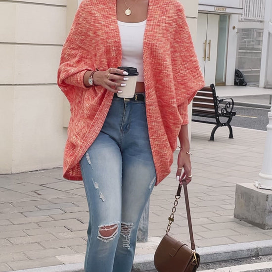 Colorful Waffle Knit Open Front Coat Batwing Long Sleeve Cardigan