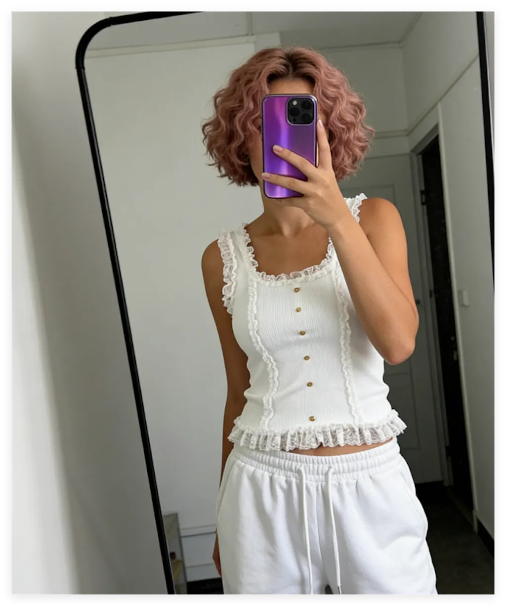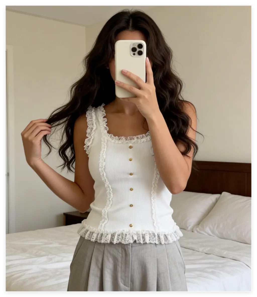 Delicate Lace Trim: Contrast lace at neckline and hem adds romantic charm and elevates the look with elegant, feminine detailing.