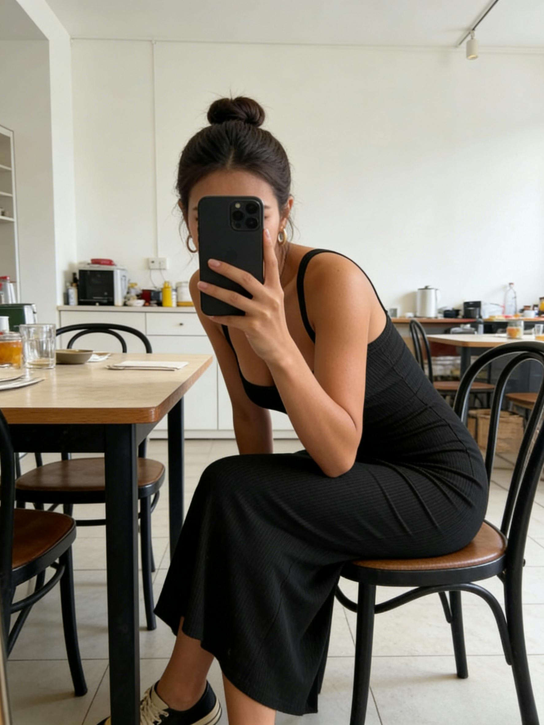 Silhouette & Fit: A slim-fit, mid-length silhouette contours the body naturally. The fitted waist and hip-hugging cut enhance curves without restriction, while the back slit improves ease of movement and flatters different body shapes.