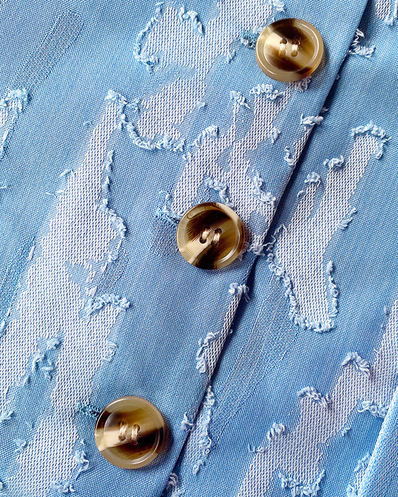 - Fabric: Jacquard denim-look fabric delivers texture and structure with a lightweight, easy-wear feel.