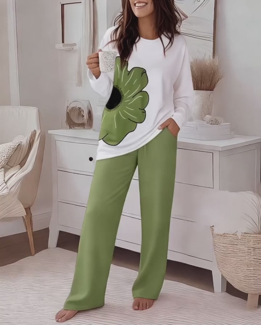 Styling & Pairing: Wear as a coordinated set for cozy home moments, or mix the floral top with leggings and the pants with plain tees for versatile loungewear styling.
