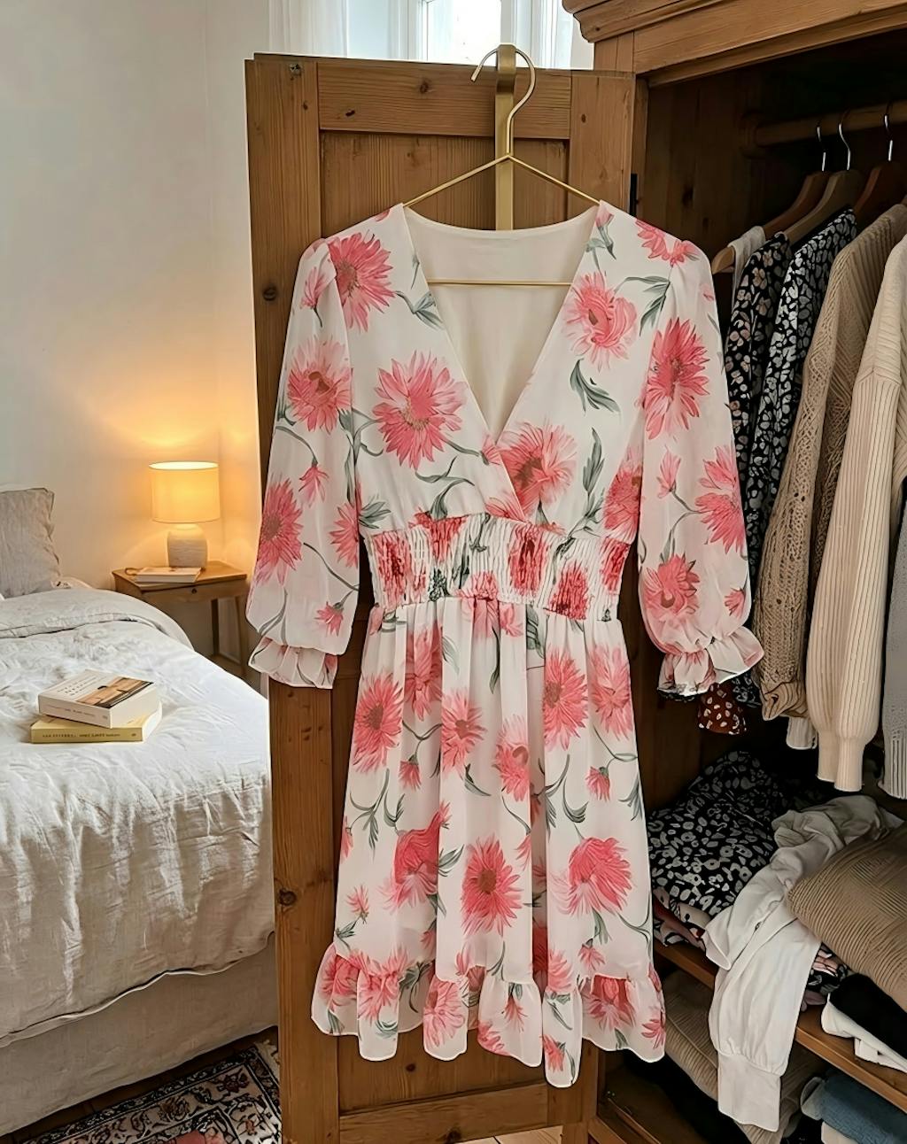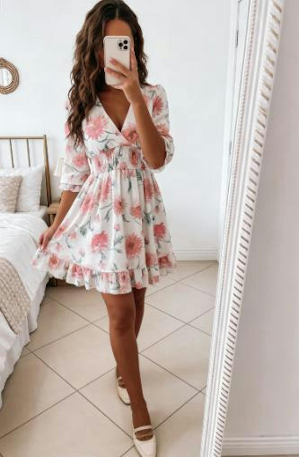 The floral print is so vibrant and the smocked waist is so flatteringhugs my curves in all the right places