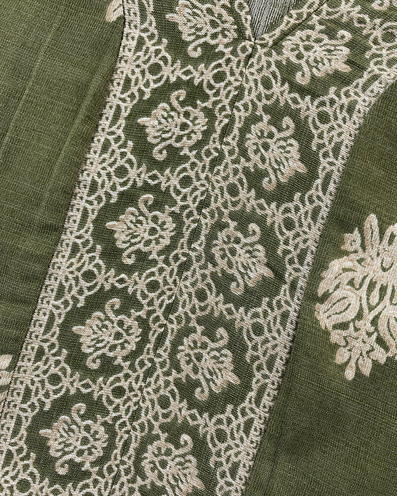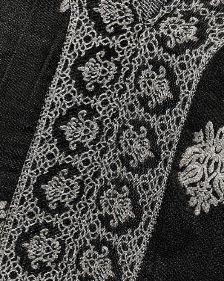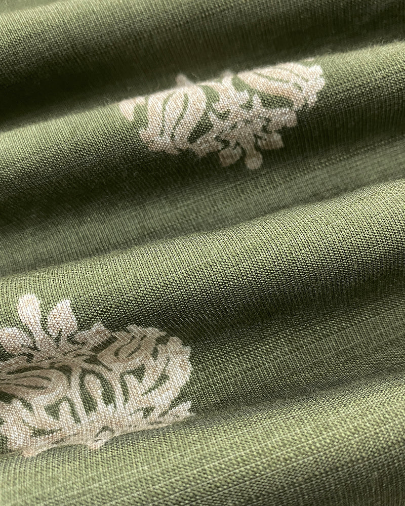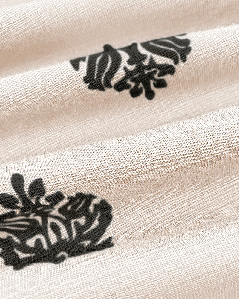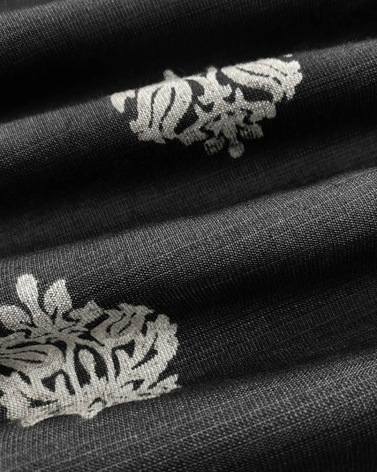- Design Details: The blouse features a deep V-neckline that adds a touch of femininity and openness. The placement floral print brings visual focus and dimension, while the asymmetrical hem enhances the blouse’s casual elegance with a soft, dynamic line.