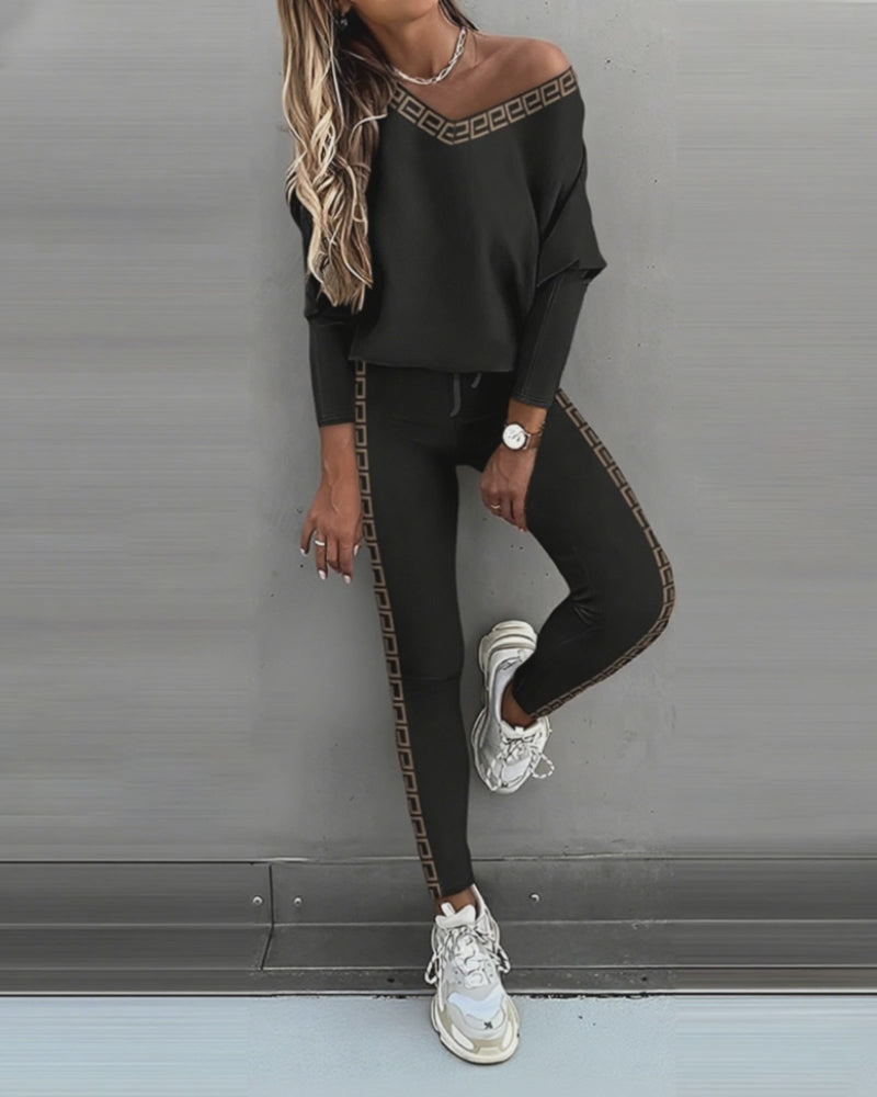Silhouette & Fit: The slim-fit pants and relaxed top create a flattering balanced silhouette. The elastic waistband with drawstring ensures a flexible fit that adapts to your body.