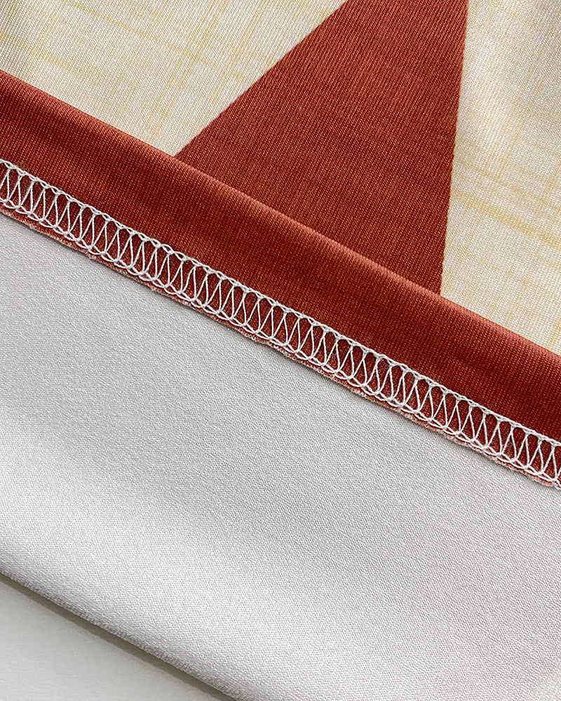 Geometric Print Square Neck Thick Strap Vacation Dress Casual Slim Fit Slit Maxi Dress
