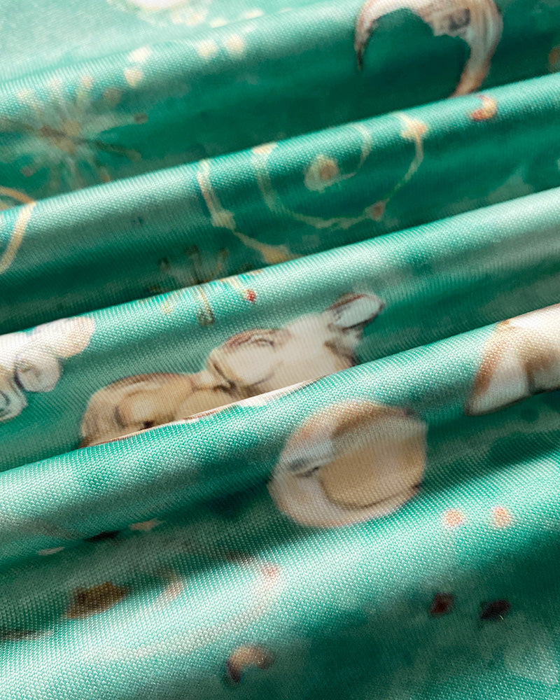 Graphic Print Lace Patch Bowknot Decor Sleep Dress