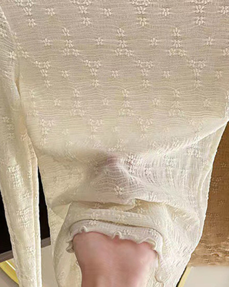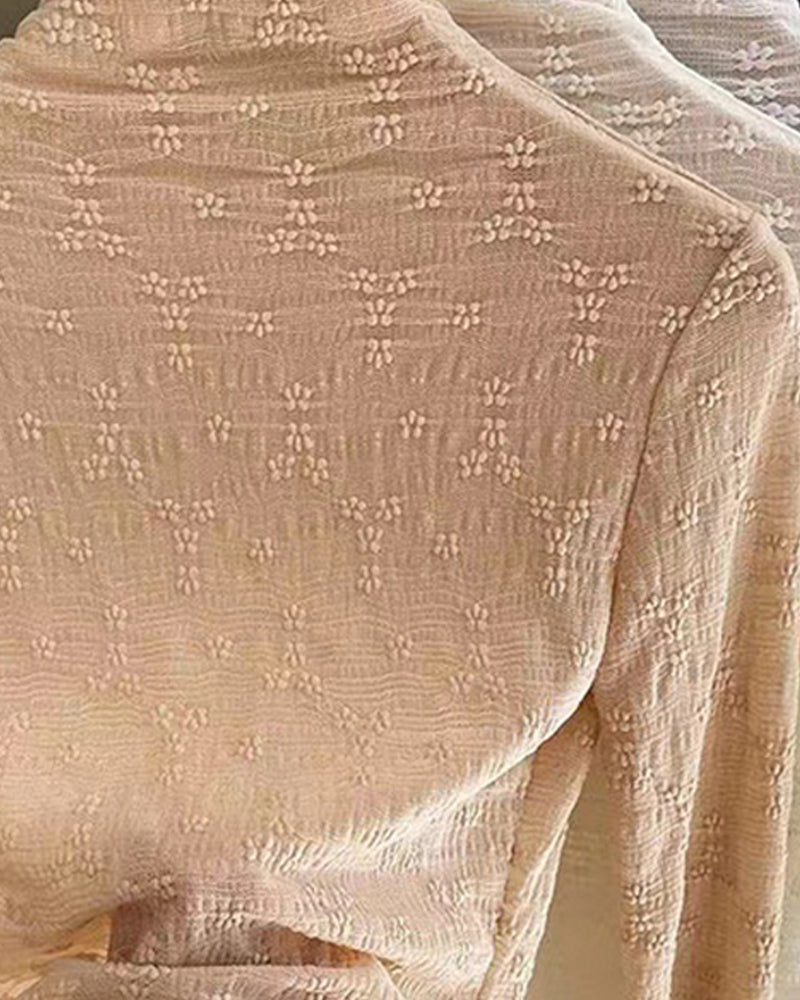 Lace Frill Hem Mock Neck Long Sleeve T-Shirt Sexy Floral Sheer Mesh Hollow Out Top